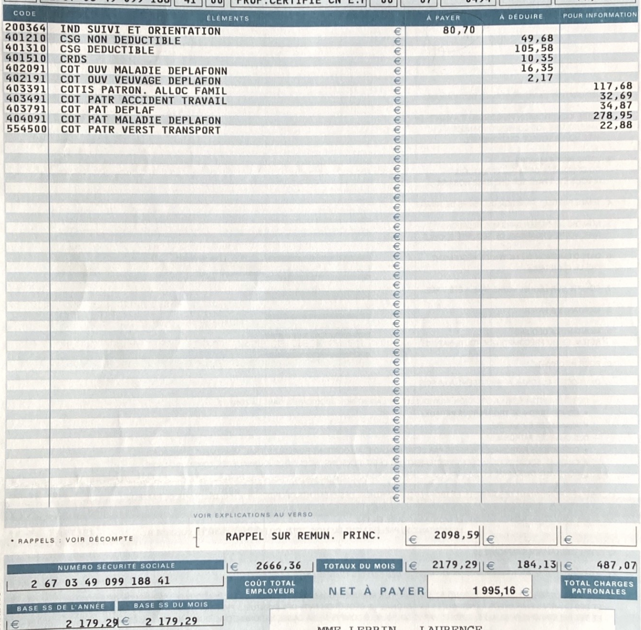 Votre bulletin de salaire n'apparaît pas dans sa totalité, normal car votre identité serait connue.
